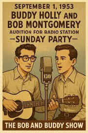 KDAV announced that anyone who wished to perform could come down to the station that Sunday. Budddy and Bob showed up. Besides the radio station, Duncan was involved in booking and promoting. Holly's very first performance on the Sunday Dance party caught Duncan's attention. Duncan encouraged Holly, Montgomery and a younger bass player to form a trio, and the group was given a regular half-hour slot on the Sunday Party at 2:30 P.M. The trio's segment was named "The Buddy and Bob Show." That October the group added Jerry Allison on the drums.