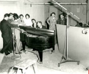 Lee with her producer Owen Bradley, the Anita Kerr Singers, and A