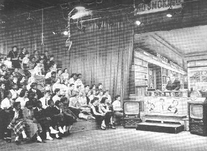 Clark had no problems with telling untruths to make himself look good. He would maintained throughout his life that interegrated American Bandstand in 1957. Dancers that were on the show, among them Frank Spagnuola one of Bandstand's original dancers, saying along with others, that they never saw any black dancers on the show. The only known picture of black 's appearing on Clark's show prior to the west coast moves is shown on the right. In the picture the Jimenez sisters are shown, neither who were on the show in 1957. The photo on the left was from 1953's Bandstand.