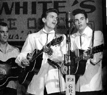 In June of 1957 the Everlys made their their first appearance as regulars on the Grand Olde Opry in Nashville where they brought their innovative acoustic guitar rhythm and vocal blends to the old Ryman Auditorium. They were the first act to use drums at the Grand Ole Opry and to this day are given credit for introducing and developing drums in Nasheville.